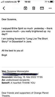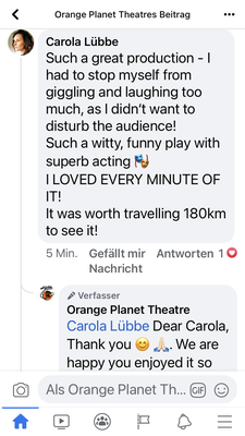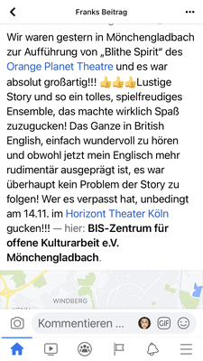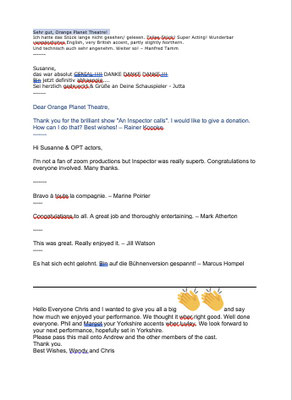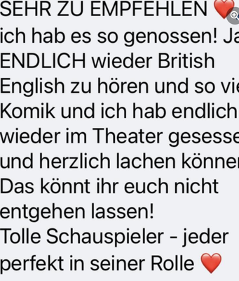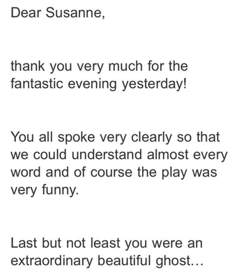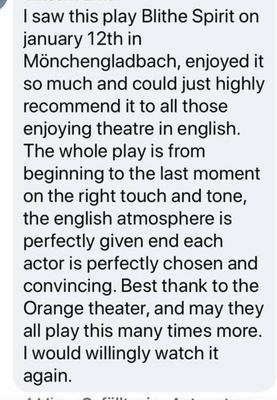 Post navigation Previous: BLITHE SPIRIT by Noël Coward – Tour 2021/2022Next: HAPPY DAYS ARE HERE AGAIN Related Posts Audience feedback for LONG LIVE THE SHORT STORY Read More Audience feedback for SHAKESPEARE IN WORD & MUSIC Read More Audience feedback for THE IMPORTANCE OF BEING EARNEST Read More